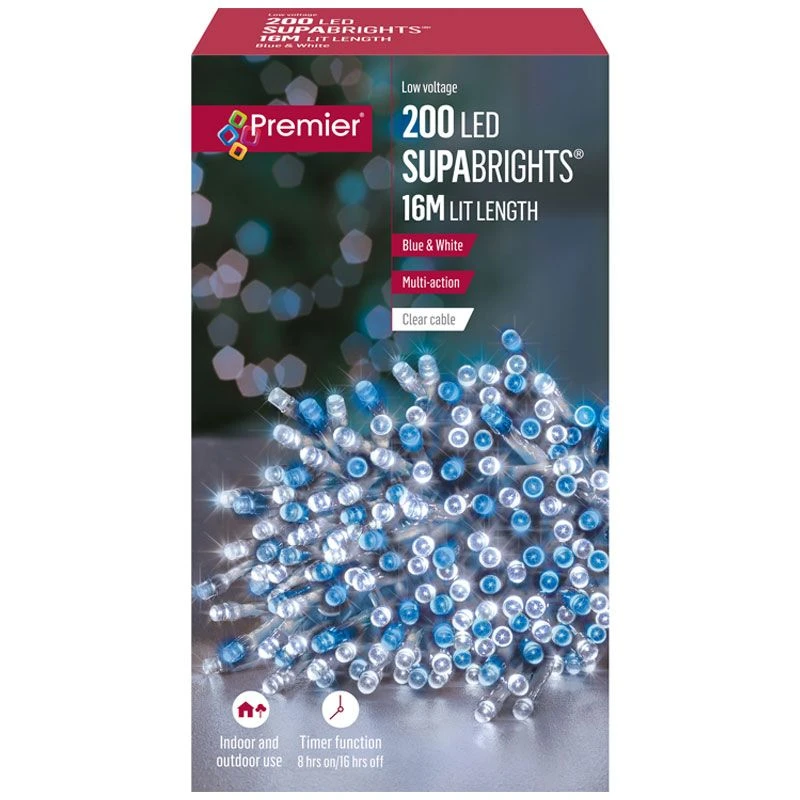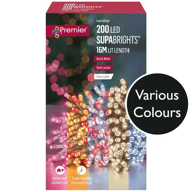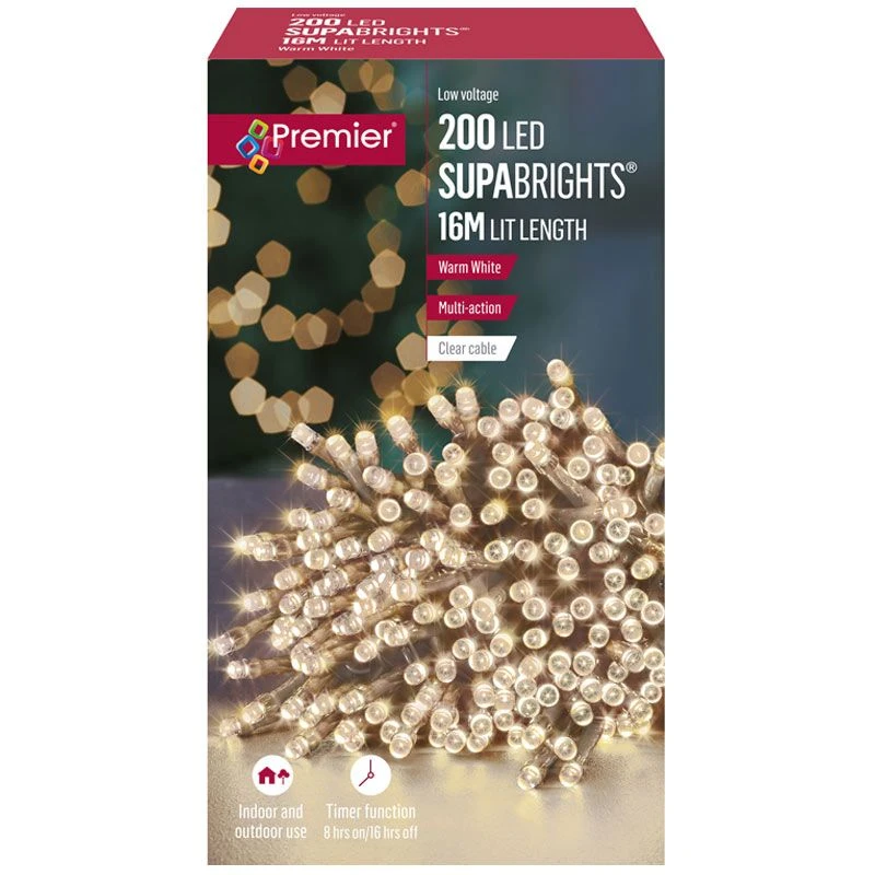 200 LED Supabrights on Clear Cable with Timer function – Premier Christmas Lights