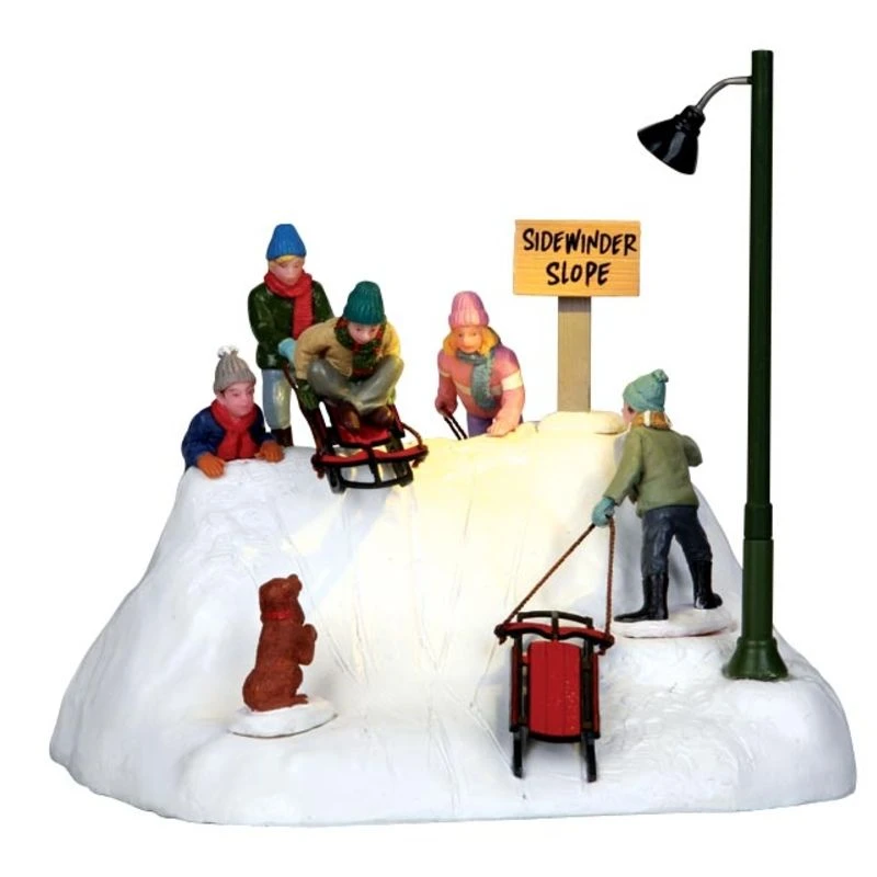 Lemax ‘Ready To Launch’ is a joyful Christmas scene, showing children having fun at the top of a snowy slope on their sleds. Watch the figurine on sled be tip back and forth while being pulled by his friend. ‘Ready To Launch’ belongs to the Lemax Vail Village Collection.