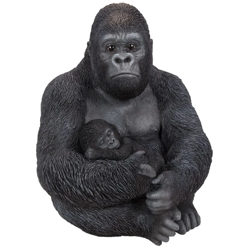 Sitting Gorilla & Baby – This lovable garden ornament depicts a mother gorilla sat cradling her baby in her arms. The infant gorilla sleeps peacefully with its head resting on its mothers arm and one hand curled into a fist by its ear.