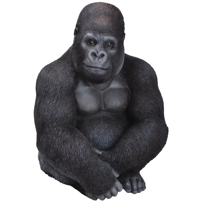 Sitting Gorilla – This resin gorilla statue sits with its head cocked to one side, crossing its arms in front of it with one hand clasped over the other.